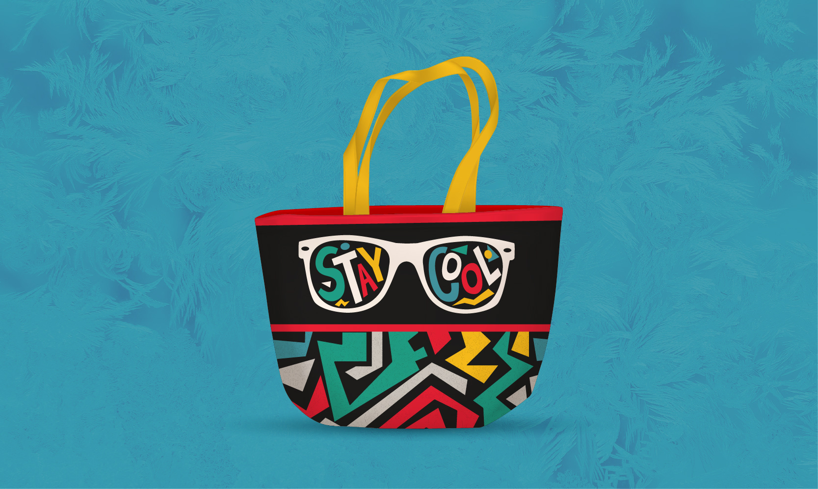 A fun, 90s-inspired insulated cold grocery bag designed for a grocery client